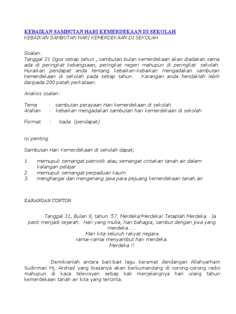 Karangan Kebaikan Sambutan Hari Kemerdekaan Di Sekolah 2014 Pdf