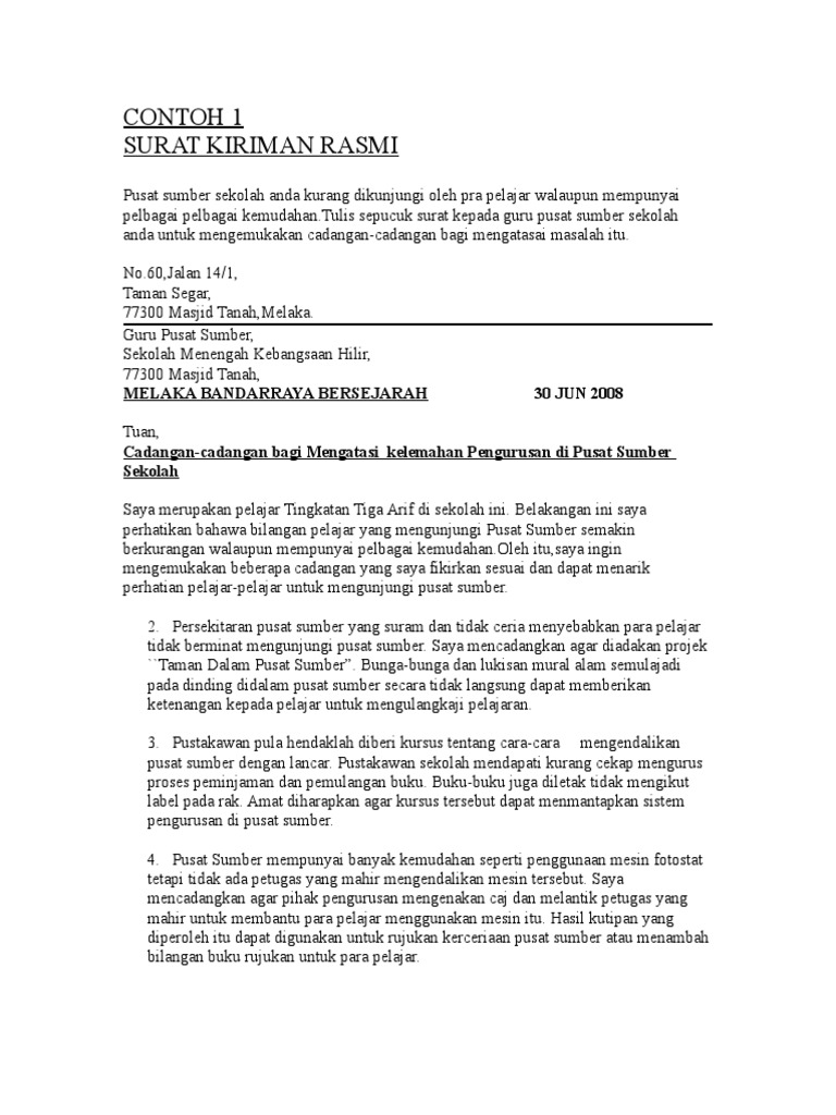 1- Contoh Surat Rasmi Aduan Jalan Rosak. Jalan Sentosa Singapura 112999 Tuan Aduan Tentang Pantai Yang Tercemar Merujuk perkara di atas saya Nazleen Bte Ahmad seorang pelajar dari Sekolah Menengah Tanjung Bunga ingin. Contoh surat kiriman rasmi aduan contoh surat kiriman rasmi permohonan contoh surat kiriman rasmi upsr memesan buku contoh surat kiriman.